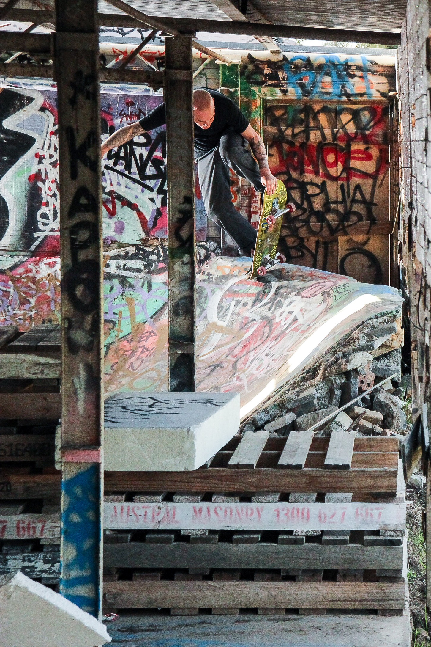 Like all these photos it was just me and Robbie. This was genuinely terrifying and I was concerned about doing myself a mischief and not having anyone else to help out if things went pear shaped. A nod to Shanae who is one of my favourite skaters.