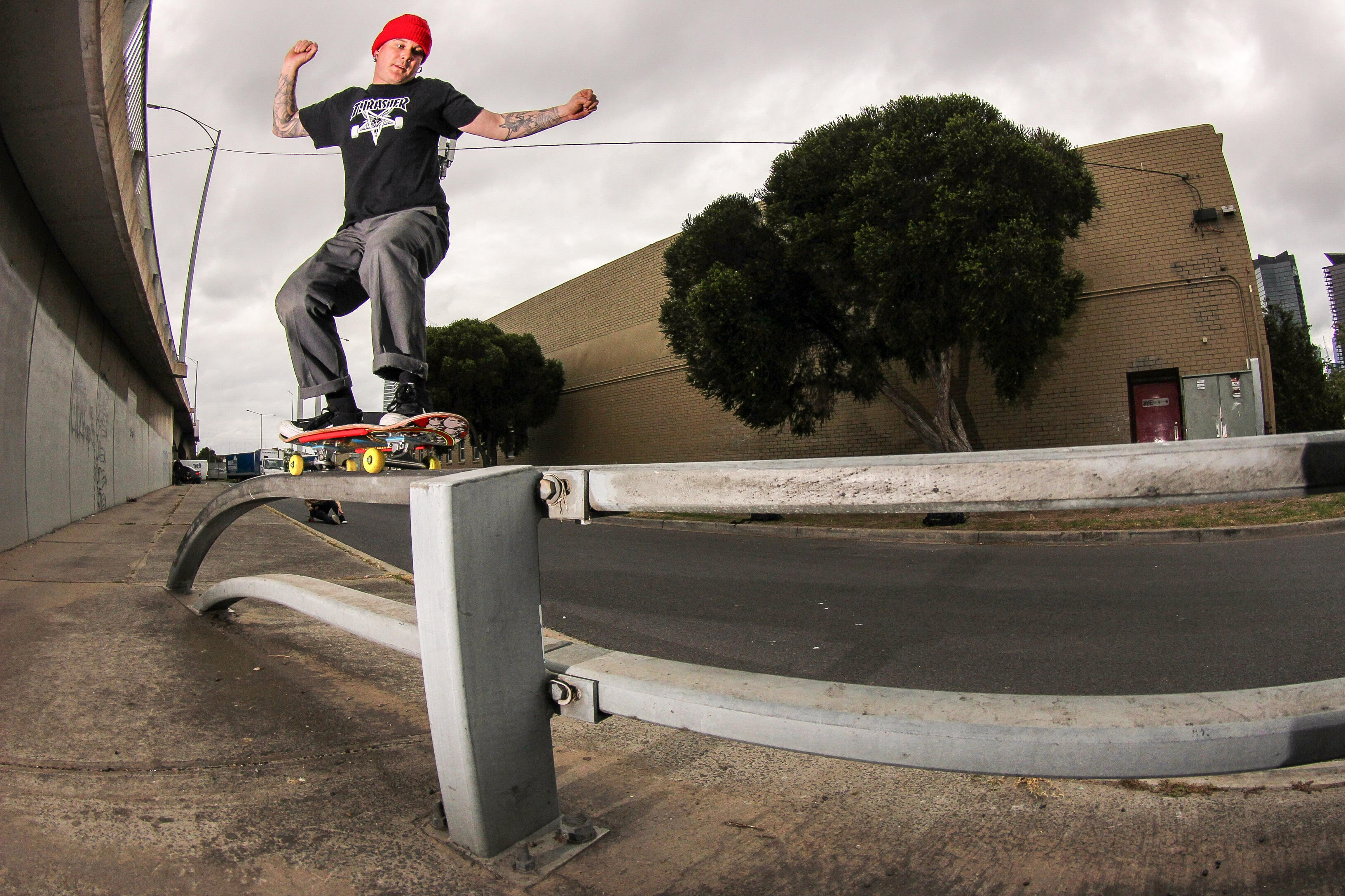 Wallie boardslide in the local neighbourhood. I thought this would be way easier than it ended up. Pants game strong.